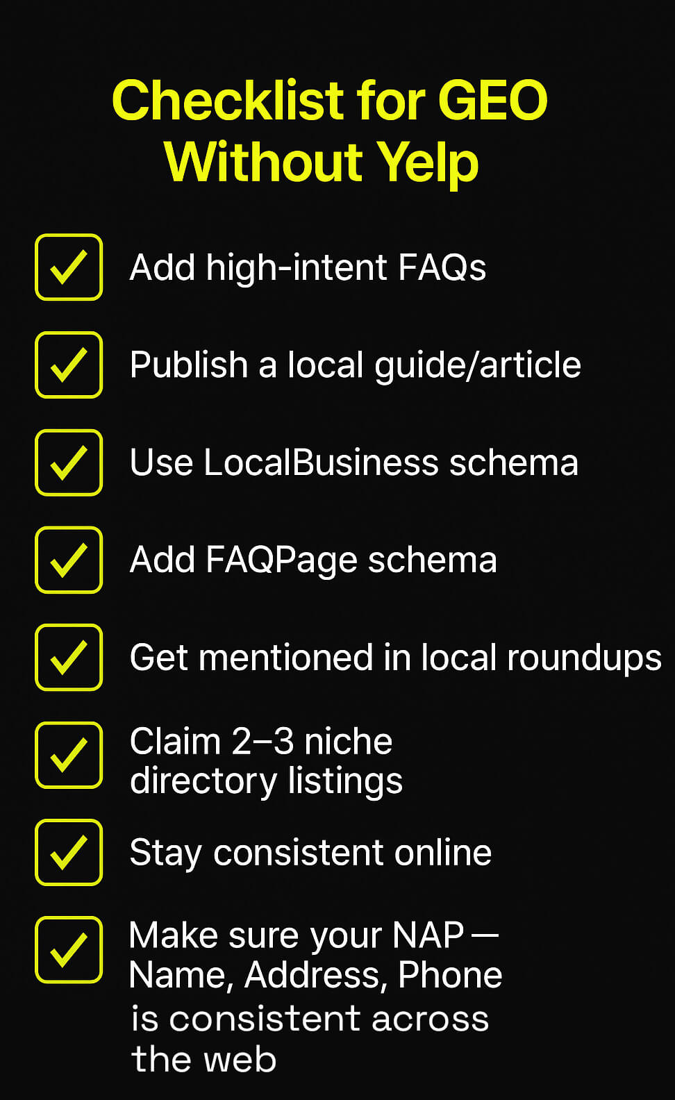 Checklist for GEO Without Yelp